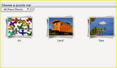 Puzzles de JigZone sobre transportes. En "Choose a puzzle cut" puedes elegir el número de piezas. Os aconsejo que comencéis por 6 piezas e ir aumentando de forma progresiva.